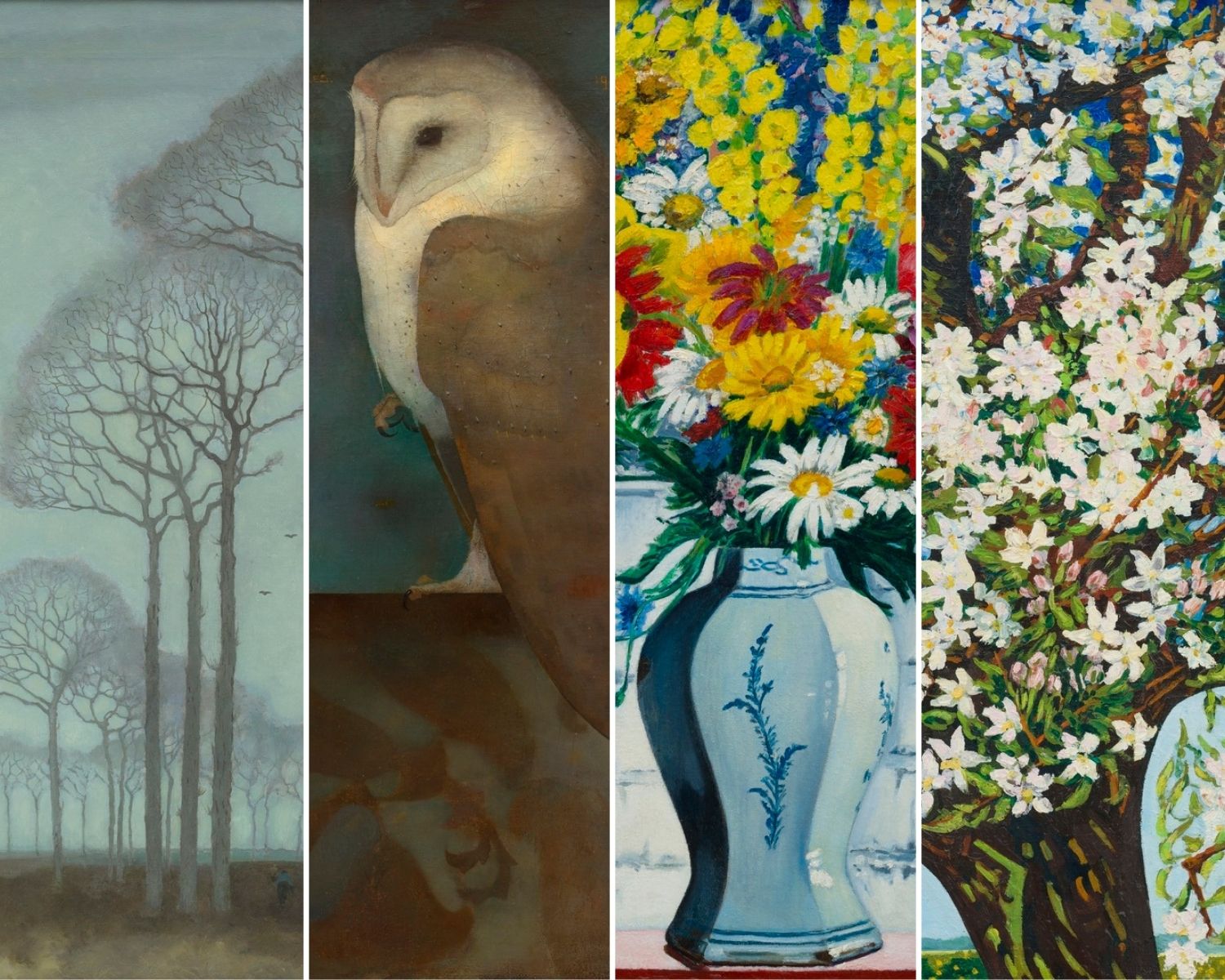 Vier legendäre Werke von Jan Mankes und Charley Toorop – von ruhigen friesischen Landschaften über geheimnisvolle Kirchen-Eulen bis hin zu explosiven Blumenstillleben. Niederländischer Realismus vom Feinsten, jetzt als limitierte Auflage an deinen Füßen.