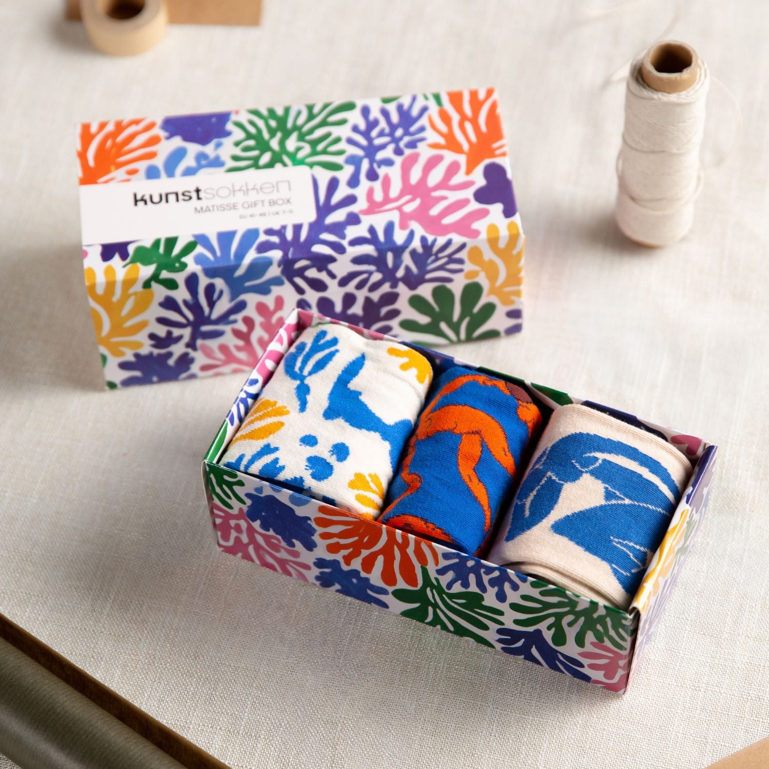 Dieses Premium-Bundle vereint zwei Meister von Farbe und Form in einem exklusiven Set. Die goldene Eleganz Gustav Klimts trifft auf die lebendige Energie Henri Matisses – zwei Gift Boxes, die jeweils ihre eigene Geschichte erzählen, wunderschön verpackt und bereit zum Verschenken.