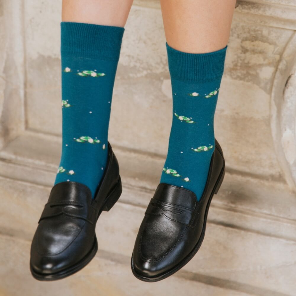Monets berühmteste Seerosen in zwei besonderen Ausführungen. Die klassische Version neben unserer luxuriösen ICONS Edition – beide bringen die Ruhe von Monets Gärten in Giverny in deine Garderobe. Ein Muss für jeden Monet-Liebhaber.